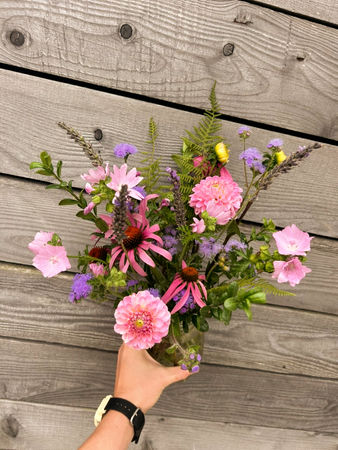 Farm-style arrangements for a personal and rustic feel. We design for weddings, restaurants, and other events. Please give us a call or fill out our contact form if you are interested in discussing our floral design services!